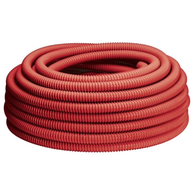 La gaine ondulée extérieure est en polypropylène. Elle est disponible en coloris bleu et rouge.