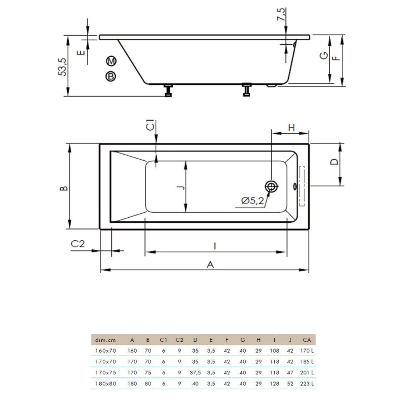 – Bonde incluse pour les types de baignoires sauf la baignoire sans hidro