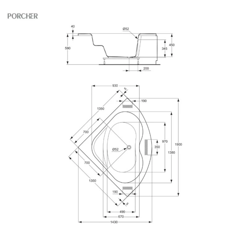 La baignoire d’angle Ulysse 2 présente les caractéristiques suivantes :