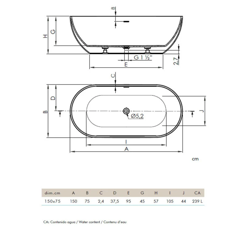 – Baignoire sanydur gel coat avec débordement intégré en îlot Blanc Mate