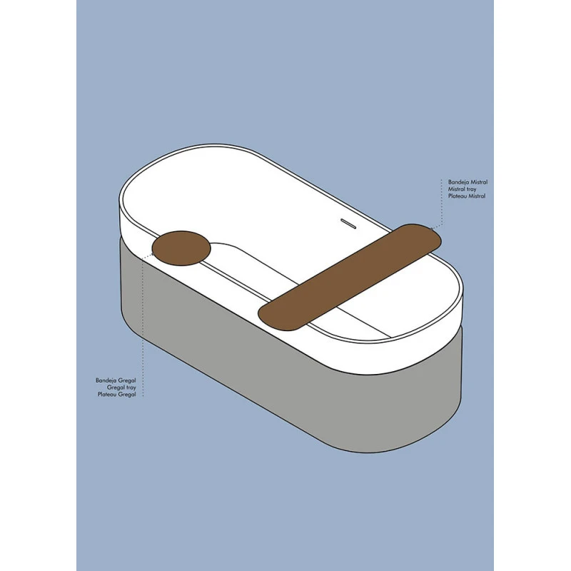 – Plateau à glissière Gregal Ø30 cm (texture bois) et Mistral plateau pour baignoire freestanding 86x20cm (texture bois) en option