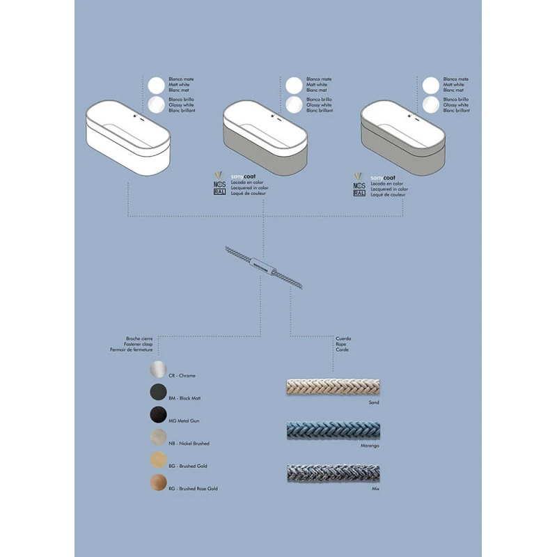 – Fermoir de fermeture (couleur chrome) + Corde (texture Sand) inclus