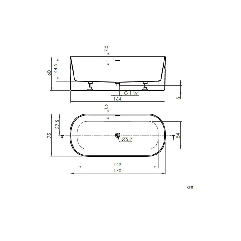 – Baignoire Sanitaryacrylic avec débordement intégré en îlot Blanc Mate