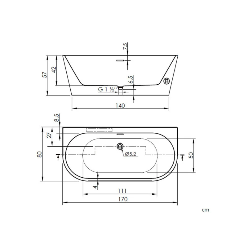 Baignoire Murale Au Sol – Torino Muro – Dimensions 170 X 80 X 57 Cm