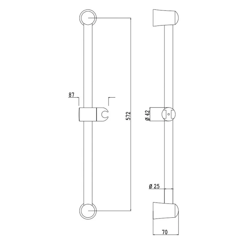 – Barre de douche murale en laiton chromé : Hauteur 600 mm, ø 25 mm de diamètre, curseur orientable