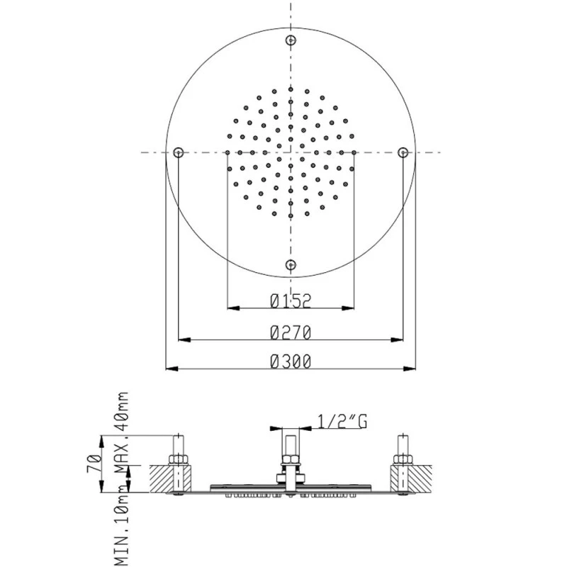 Ciel De Douche à Encastrer Acier Inox Diamètre ø 300mm – 1 Jet
