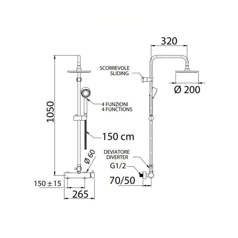 Colonne De Douche Thermostatique – Tête Ronde – Wellness
