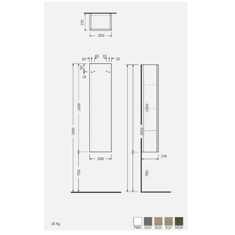 Colonne de rangement suspendu – Rak-Joy – 30 X 23,5 X 120 cm