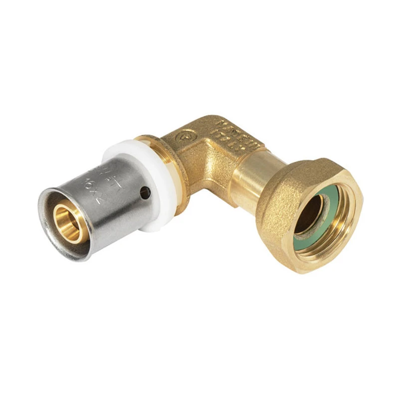 L’utilisation de raccords coudés femelle à écrou tournant multicouche à sertir simplifie significativement les opérations de raccordement du tube multicouche. L’assemblage est rapide et propre grâce à l’absence totale de matériaux d’étanchéité, pâtes et liquides lubrifiants. La tenue mécanique s’obtient par déformation de la douille en acier inoxydable par pressage avec l’outil prévu.