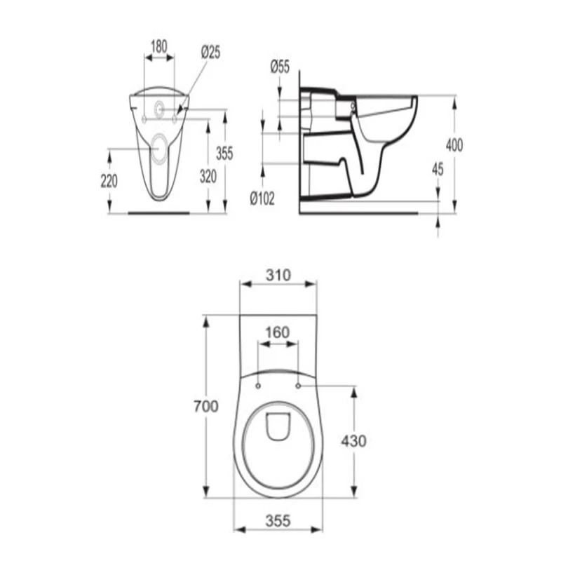 – Cuvette suspendu rallongée pour personnes à mobilité réduite.