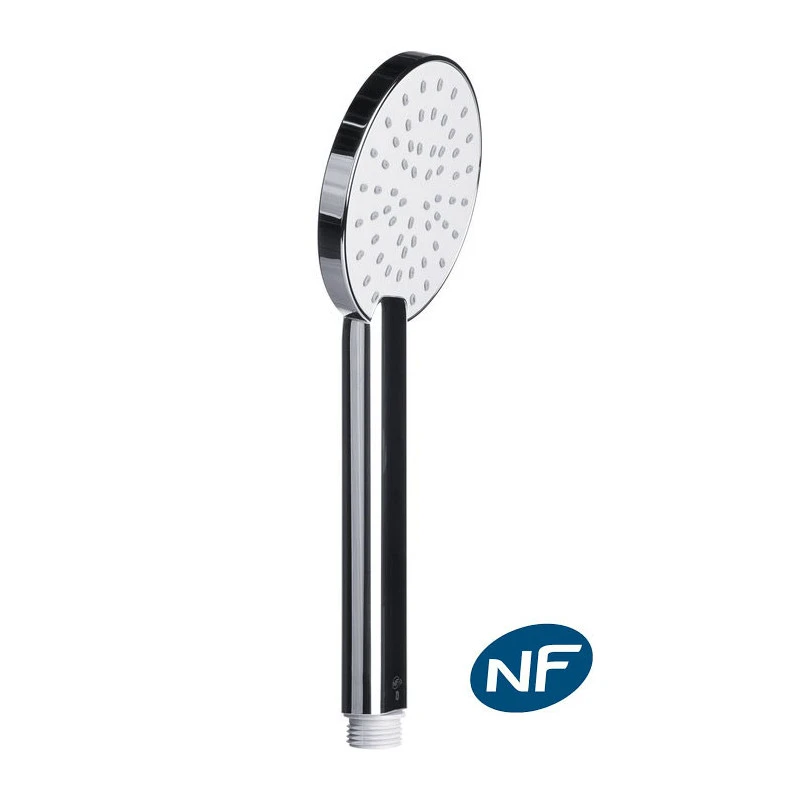 La douchette Marie dispose de picots souples anticalcaires permettant un nettoyage facilité. Le calcaire se décroche en frottant simplement la surface. Elle est dotée d’un système d’air permettant de faire des économies d’eau lors de votre douche. La douchette possède un jet d’eau pluie O2 avec un diamètre de 100 mm. Le débit d’eau est de 9,60l/min avec une arrivée mâle 1/2″.