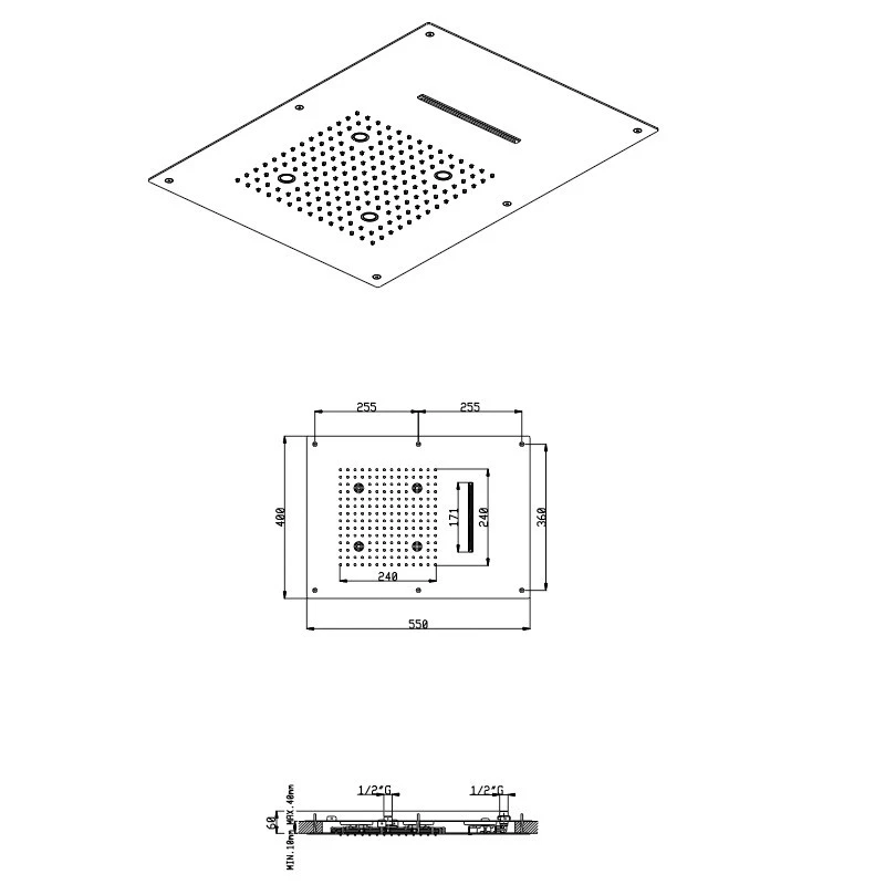 - Plafond de douche encastré à faux plafond 550×400 mm