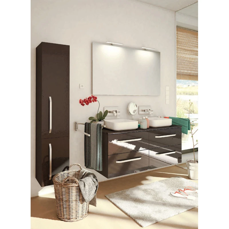 - 1 Colonne de rangement 2 portes (3 étagères réglables en verre + 1 étagère fixe), dimensions H 150 cm
