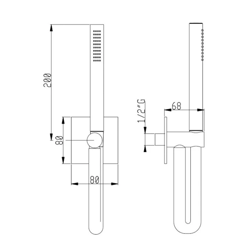 – Kit de douche complet (flexible + douchette) avec sortie d’eau murale et support fixe pour douchette ronde en laiton