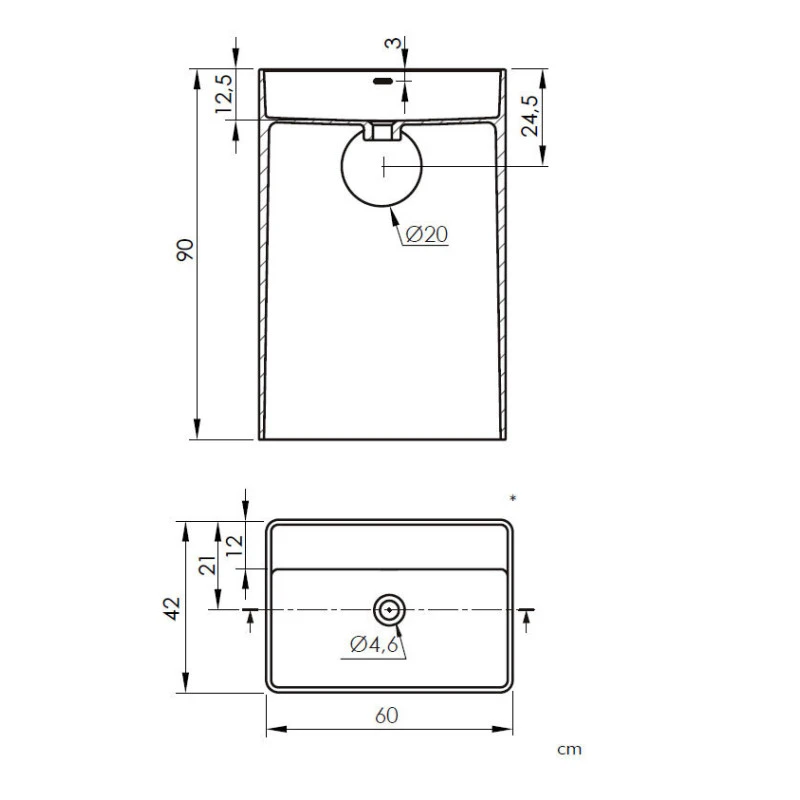 Lavabo Sur Colonne Au Sol – Cabanes – Dimensions 60 X 42 X 90 Cm