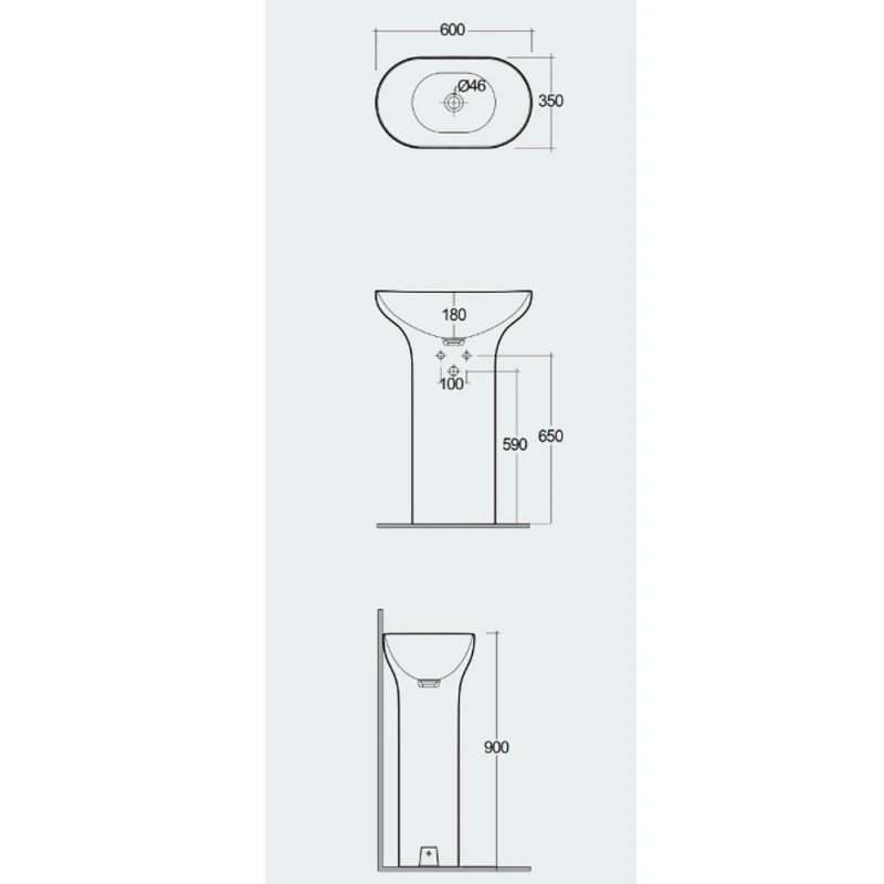 Lavabo Sur Colonne Au Sol – Rak-Des – Dimensions 60 X 35 X 90 Cm