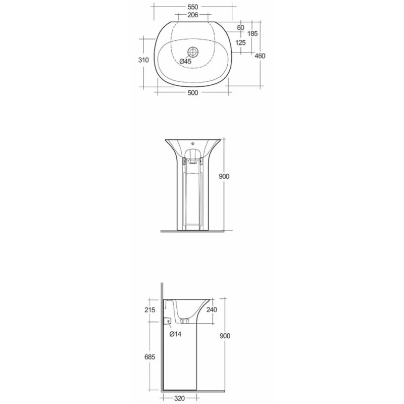 Lavabo Sur Colonne Au Sol – Rak-Sensation- Dim 55 X 46 X 90 Cm