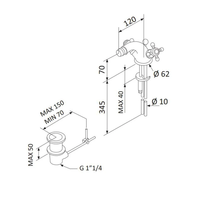 Mélangeur Bidet Chromé Tradition Bec Fixe Avec Vidage