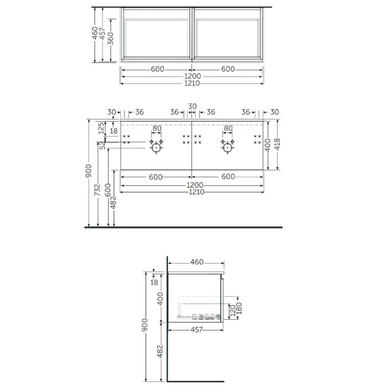 Meuble Pour Double Vasque Suspendu – Rak-Joy Uno – 60 X 46 X 40