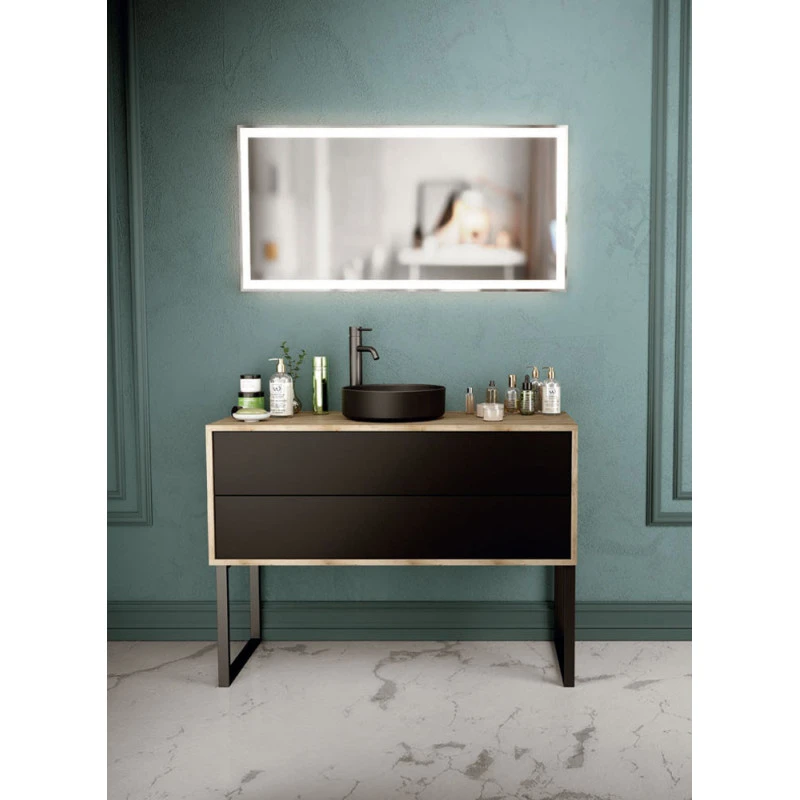 - 1 Meuble nu bas sous vasque : Hauteur 46 cm – Largeur 120 cm – 2 tiroirs