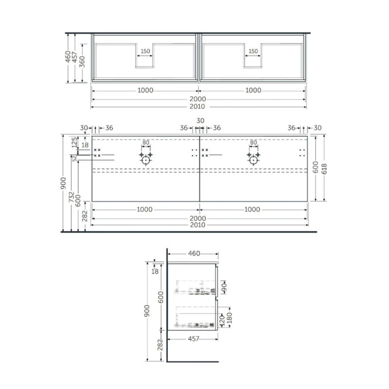 Meuble Suspendu Pour Vasque à Poser – Rak-Joy – 200 X 46 X 60 Cm
