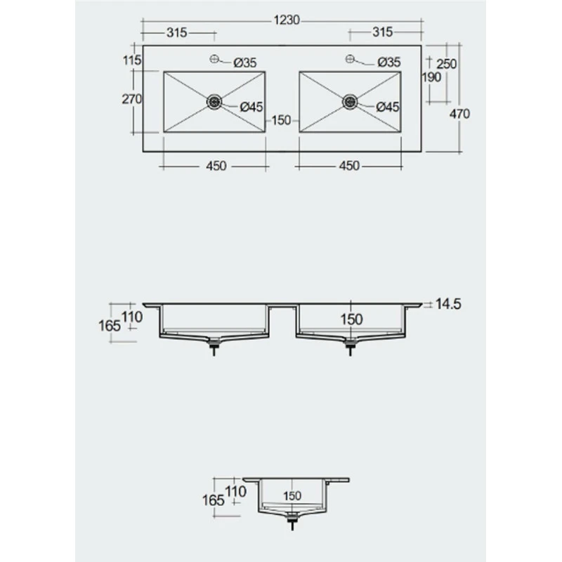 Meuble + Vasque Complet – Rak-Precious – Dim 123 X 47 X 16,5 Cm