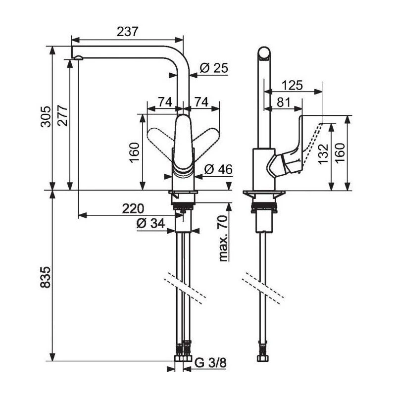 • 2 flexibles d’alimentation 900 mm avec écrou G 3/8”