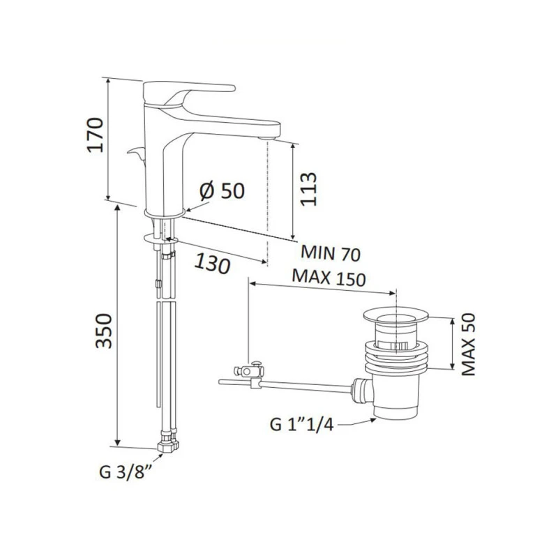 Mitigeur Lavabo Salle De Bain Corps Moyen Chromé Avec Vidage – Surf