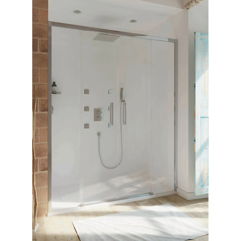 – Paroi de douche avec 2 portes fixes et 2 portes coulissantes à encastrer