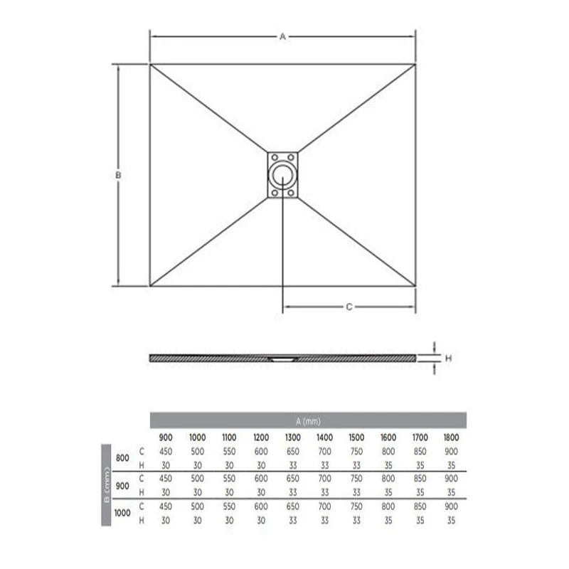 – Grille en résine, intégrée au design, avec texture et couleur identiques au receveur, incluse