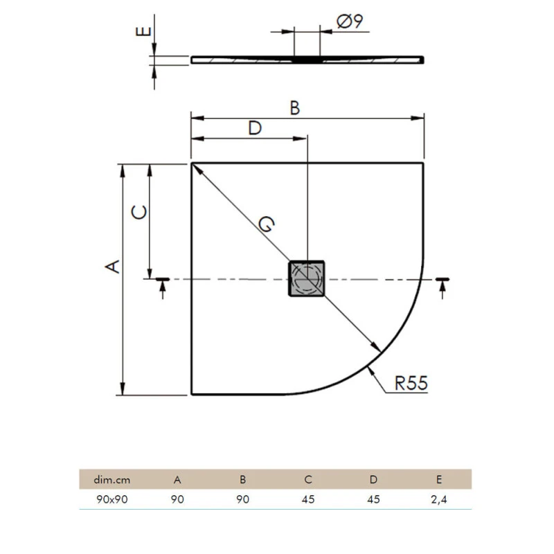 Receveur De Douche – Strato – Quart De Cercle – Dimensions 90 X 90 Cm