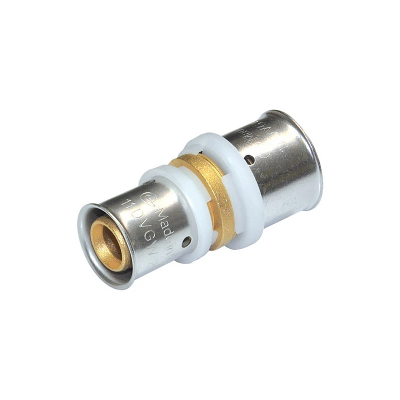 L’utilisation de raccords réduits multicouche à sertir simplifie significativement les opérations de raccordement du tube multicouche. L’assemblage est rapide et propre grâce à l’absence totale de matériaux d’étanchéité, pâtes et liquides lubrifiants. La tenue mécanique s’obtient par déformation de la douille en acier inoxydable par pressage avec l’outil prévu.