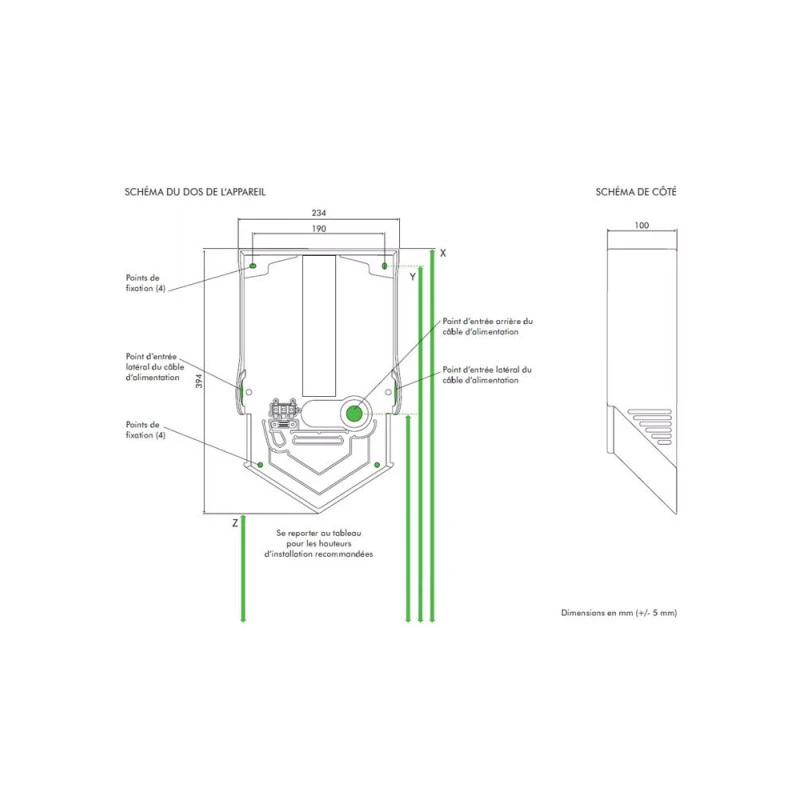 Grâce à son profil peu épais, le Dyson Airblade V ne dépasse du mur que de 10 cm. Il peut être monté et démonté d’un mur facilement grâce à sa plaque murale arrière.
