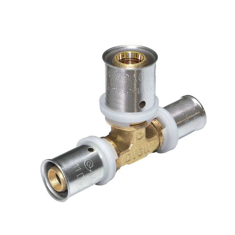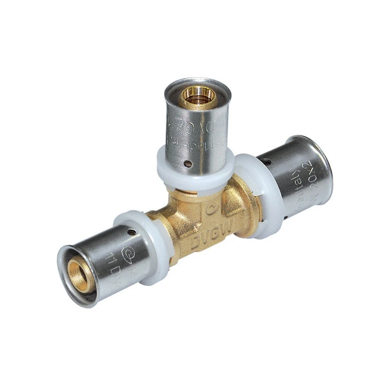 L’utilisation de raccords té multicouche à sertir simplifie significativement les opérations de raccordement du tube multicouche. L’assemblage est rapide et propre grâce à l’absence totale de matériaux d’étanchéité, pâtes et liquides lubrifiants. La tenue mécanique s’obtient par déformation de la douille en acier inoxydable par pressage avec l’outil prévu.