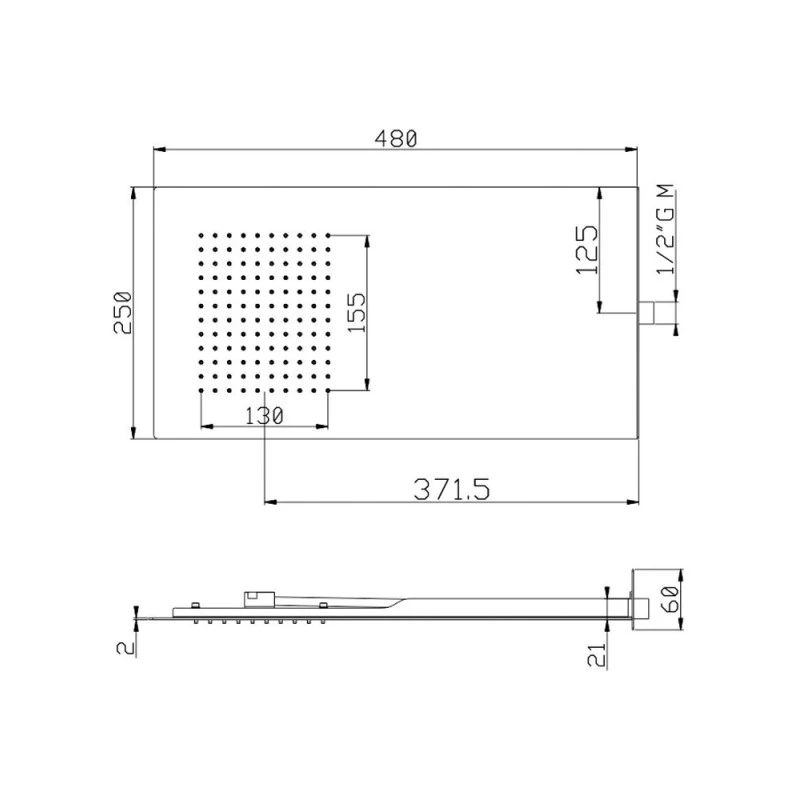 Tête De Douche Murale AquaElite 480 X 250mm – 1 Jet