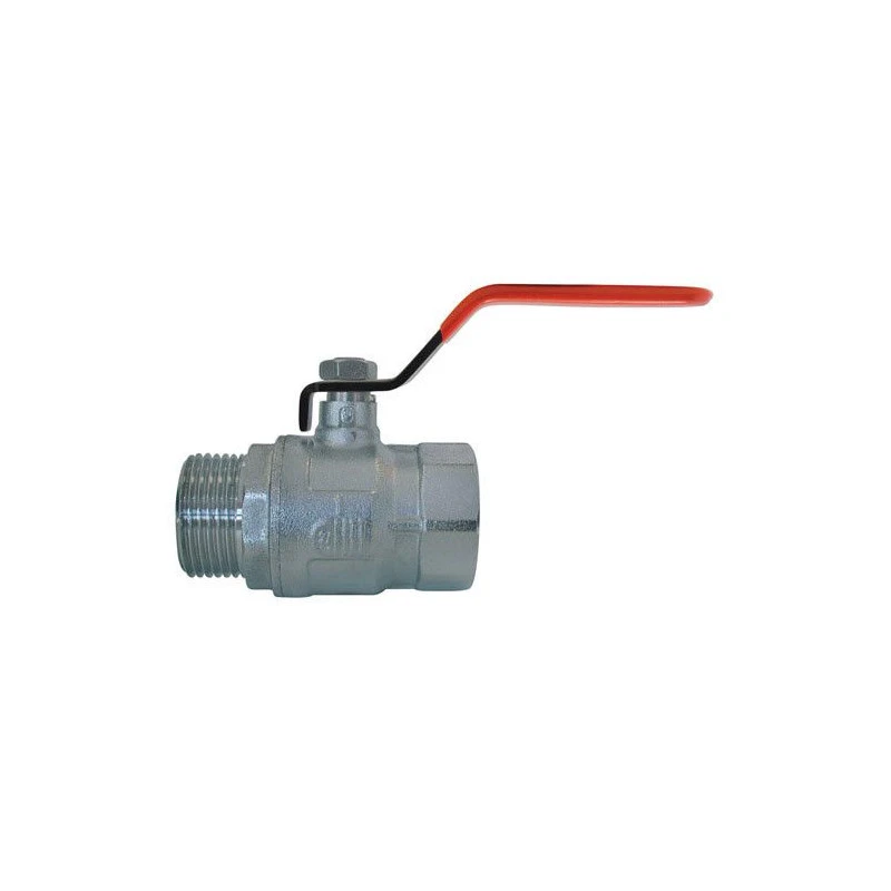 ROBINET A BOISSEAU SPHERIQUE EN LAITON CHROME – MALE/FEMELLE – POIGNEE PLATE ROUGE