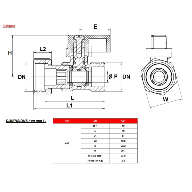 Vanne à sphère laiton 4MS pour collecteur A.C.S.