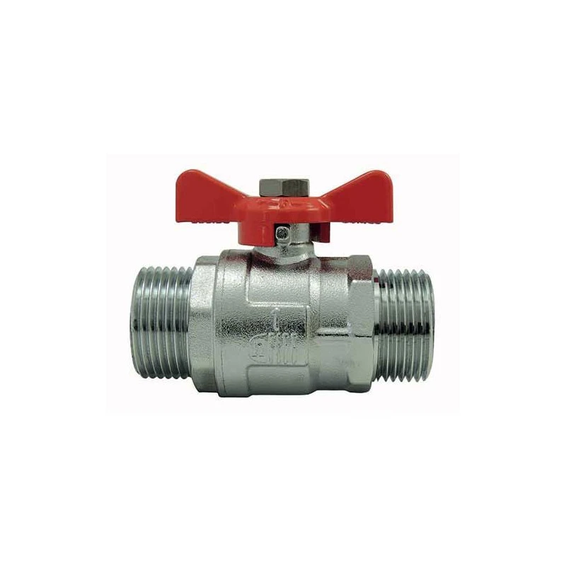 ROBINET A BOISSEAU SPHERIQUE EN LAITON CHROME – FEMELLE/FEMELLE – POIGNEE PLATE ROUGE