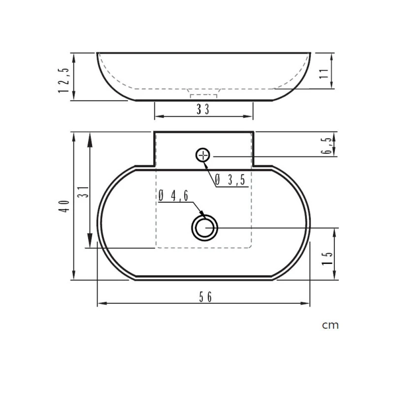 Vasque Céramique à Poser – Pisa – Dimensions 56 X 40 X 12,5 Cm