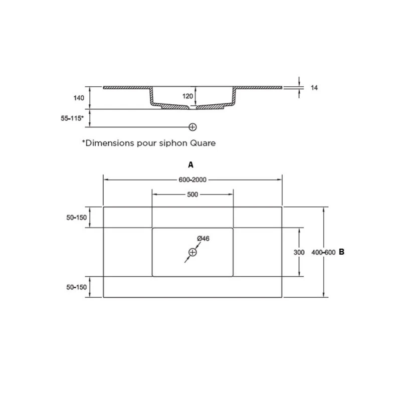 – Dimensions multiples (largeur B x longueur A en centimètres) et Couleurs du receveur au choix